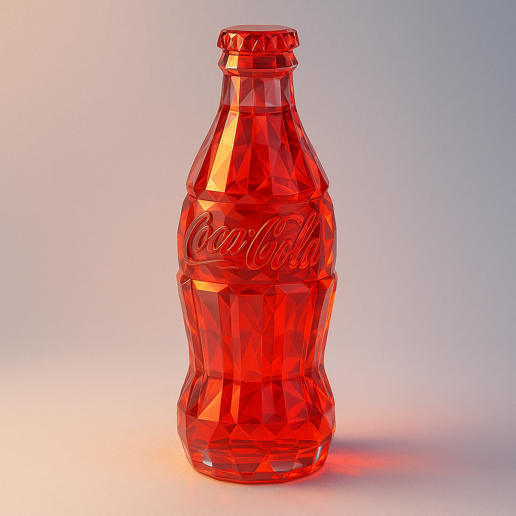 Create a hyper-realistic 8K 3D rendering of a [brand product] designed as a collectible figurine made entirely of translucent crystal. Use [surface style] facets, realistic refraction, optical depth, and light dispersion. Preserve the original [color scheme] with high transparency and vibrant caustics. Apply [lighting style] with gentle shadows and sparkling highlights. Use a [background type] to emphasize clarity and brilliance.