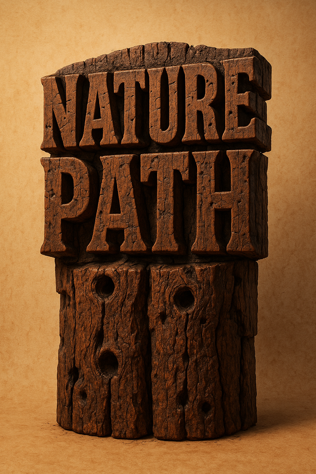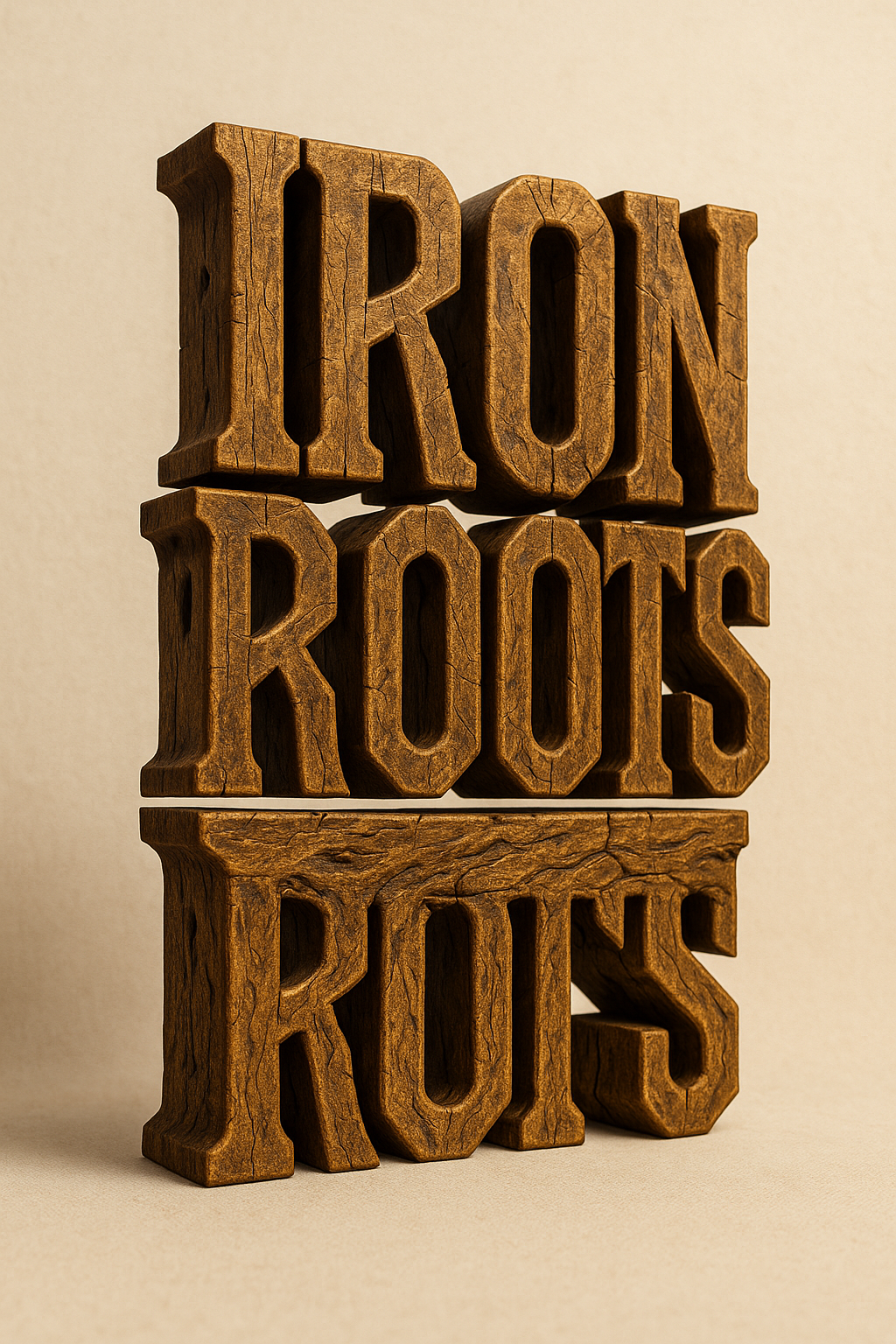 3D text, wooden block, stacked text, totem pole style, chunky serif, ancient oak, dark walnut, photorealistic, cinematic lighting, vintage texture, grounded shadows, premium typography