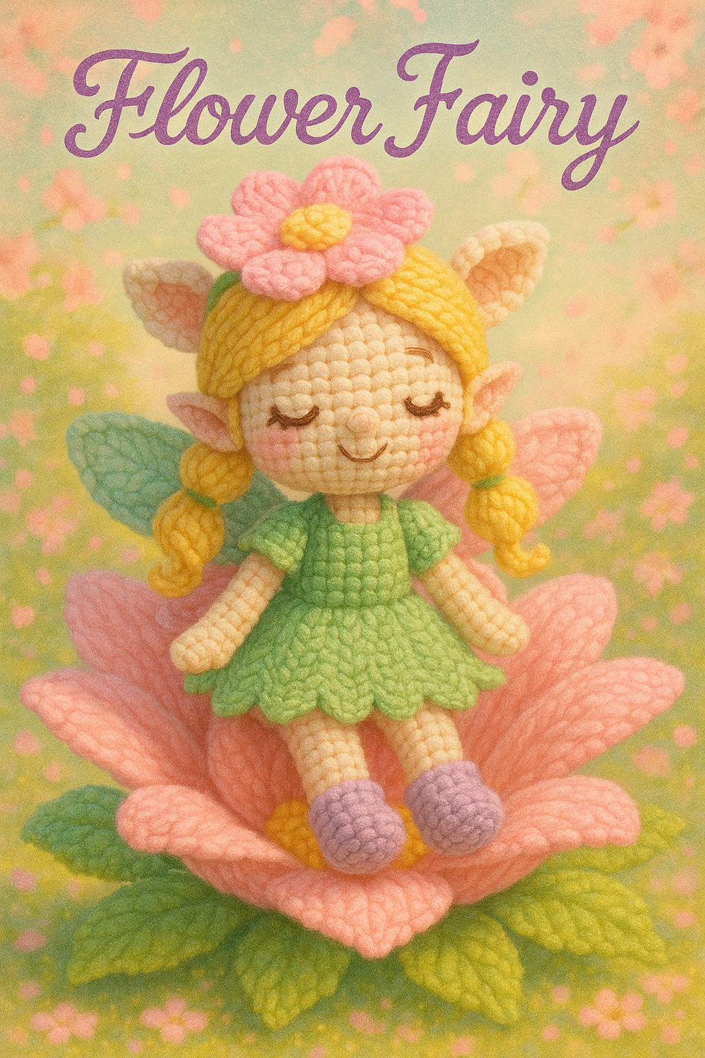 amigurumi, handmade doll, yarn plush, pastel poster, soft toy art, whimsical scene, cozy mood, DIY craft style, kawaii illustration, 2:3 vertical poster