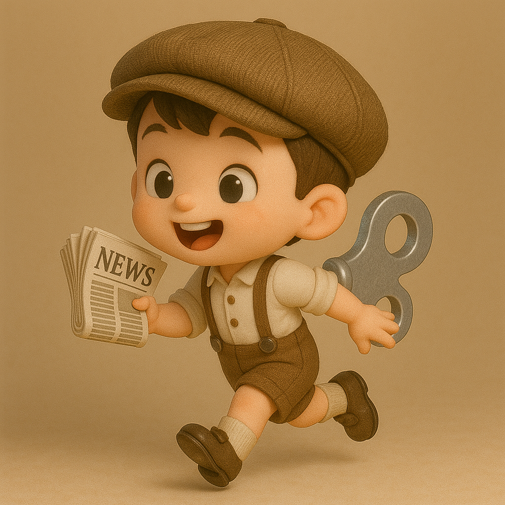 A cute chibi 3D wind-up doll model of a [vintage hairstyle man] with a [facial feature], wearing [eyewear and a style outfit] outfit. A large silver wind-up key protrudes from his back, symbolizing his need for energy. [His head tilts forward in an exhausted] pose. The character holds a [accessory] in hand. Stylized in a soft lighting studio setup.