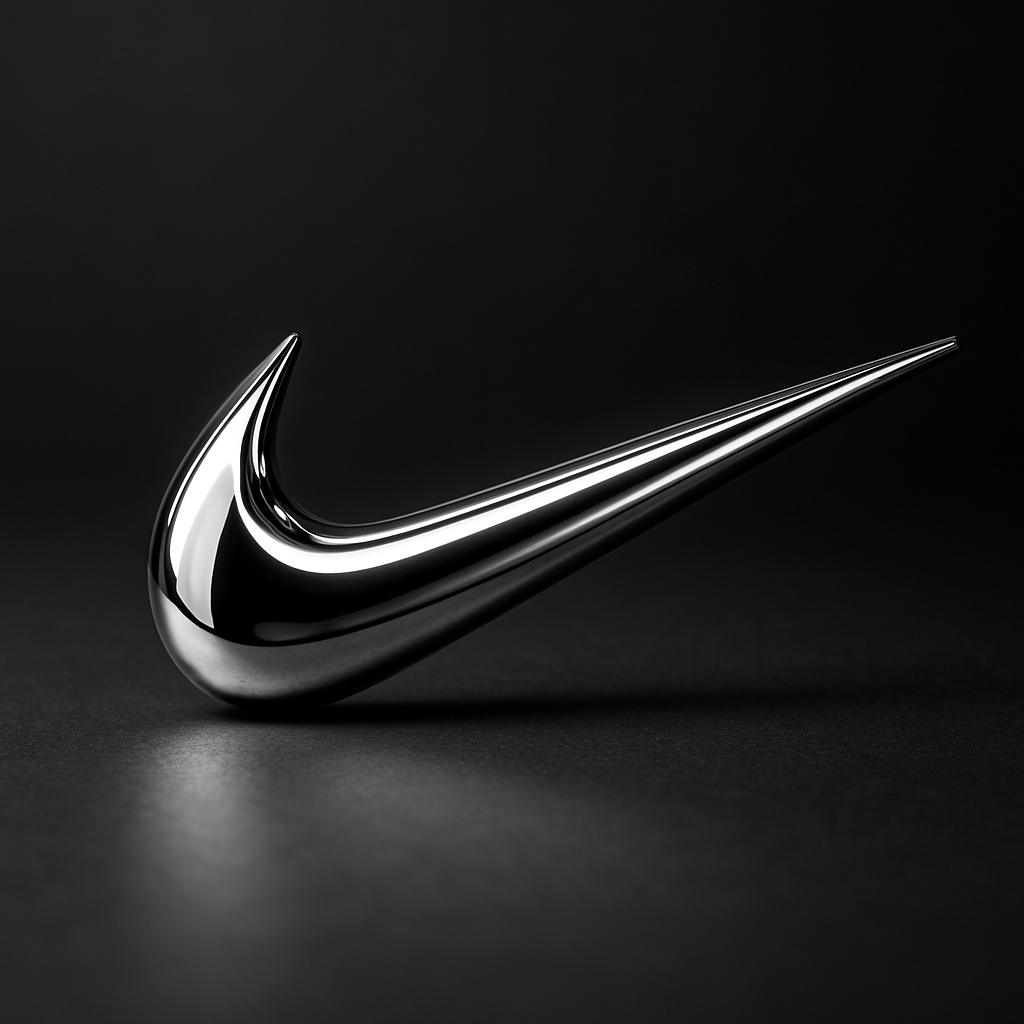 chrome logo, metallic logo, photorealistic, premium branding, 3D logo, sharp reflections, brushed metal, glossy finish, professional studio lighting, luxury brand, product photo style